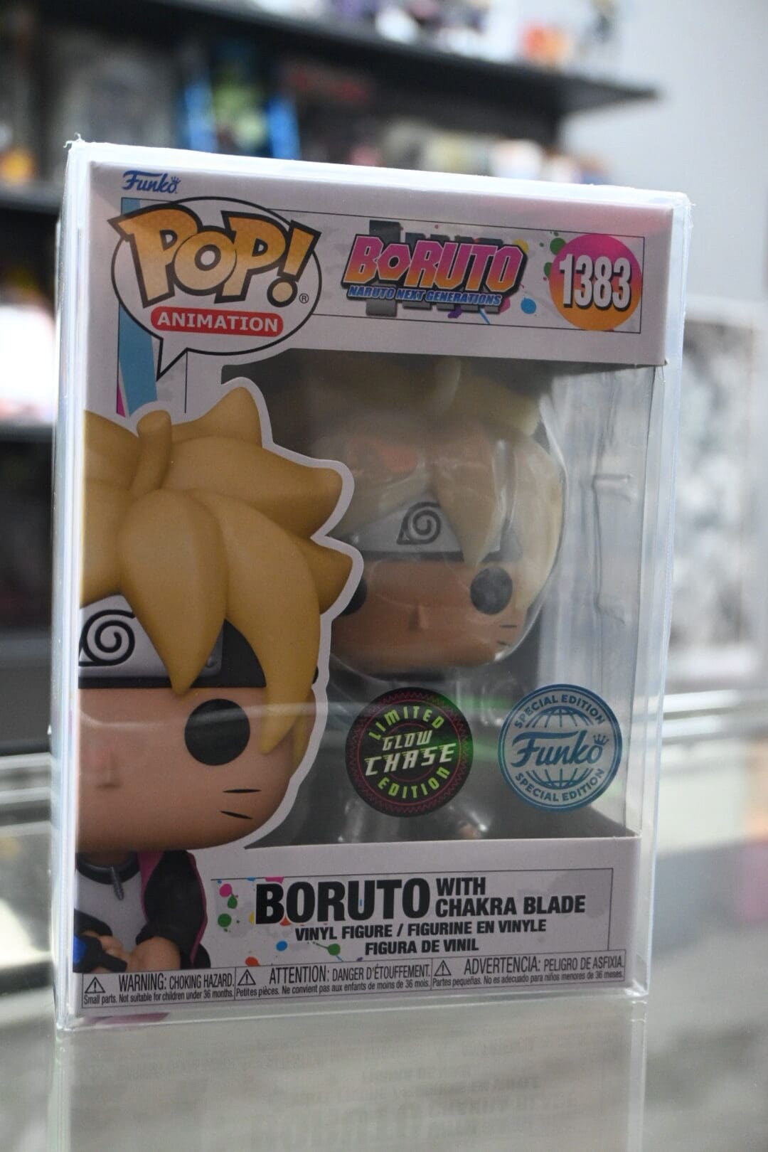 Step into the next generation of ninja legends with this Special Edition Boruto Uzumaki Pop! (#1383) featuring his chakra blade — and this one’s extra special: it’s the limited Glow-in-the-Dark Chase variant!