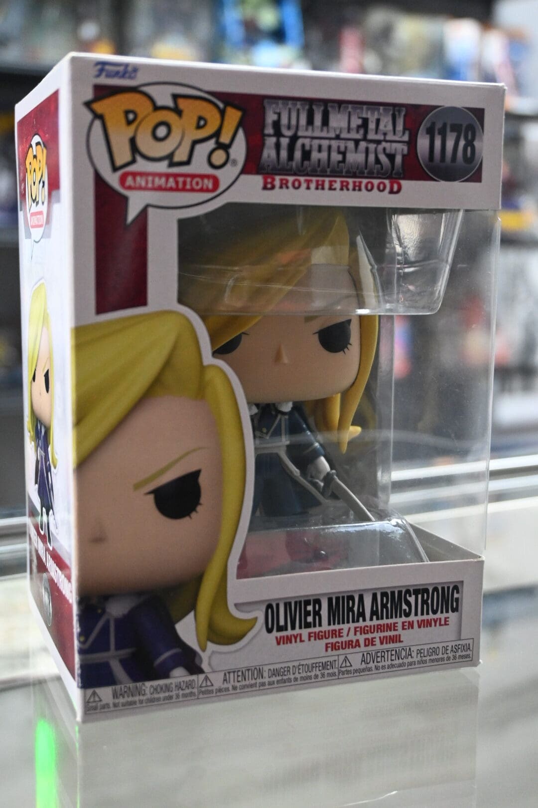 Bring the unshakable force of Briggs to your shelf with Olivier Mira Armstrong, the no-nonsense general from Fullmetal Alchemist: Brotherhood. This Funko Pop! #1178 captures her commanding presence in full military uniform, complete with her drawn sword and piercing gaze.