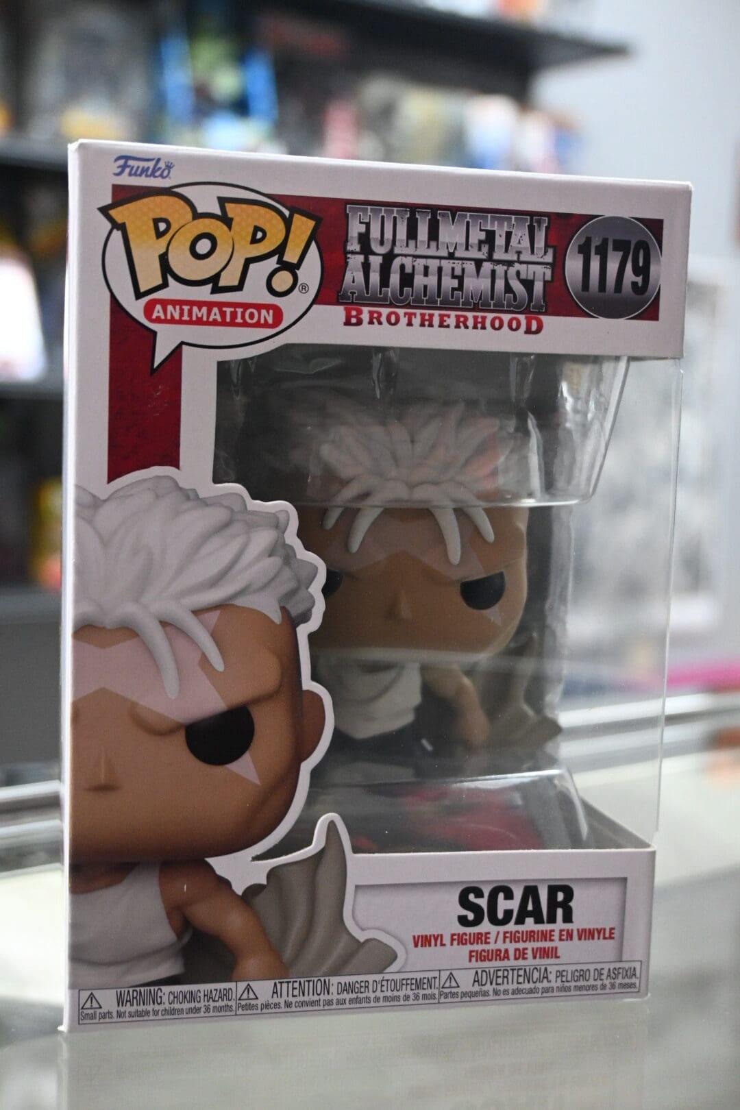 Add one of Amestris’ most complex anti-heroes to your collection with Scar, the avenger-turned-redeemer from Fullmetal Alchemist: Brotherhood. This Funko Pop! #1179 perfectly captures Scar’s iconic look — from his distinctive X-shaped forehead scar to his Ishvalan robes and alchemic tattooed arm ready for vengeance.