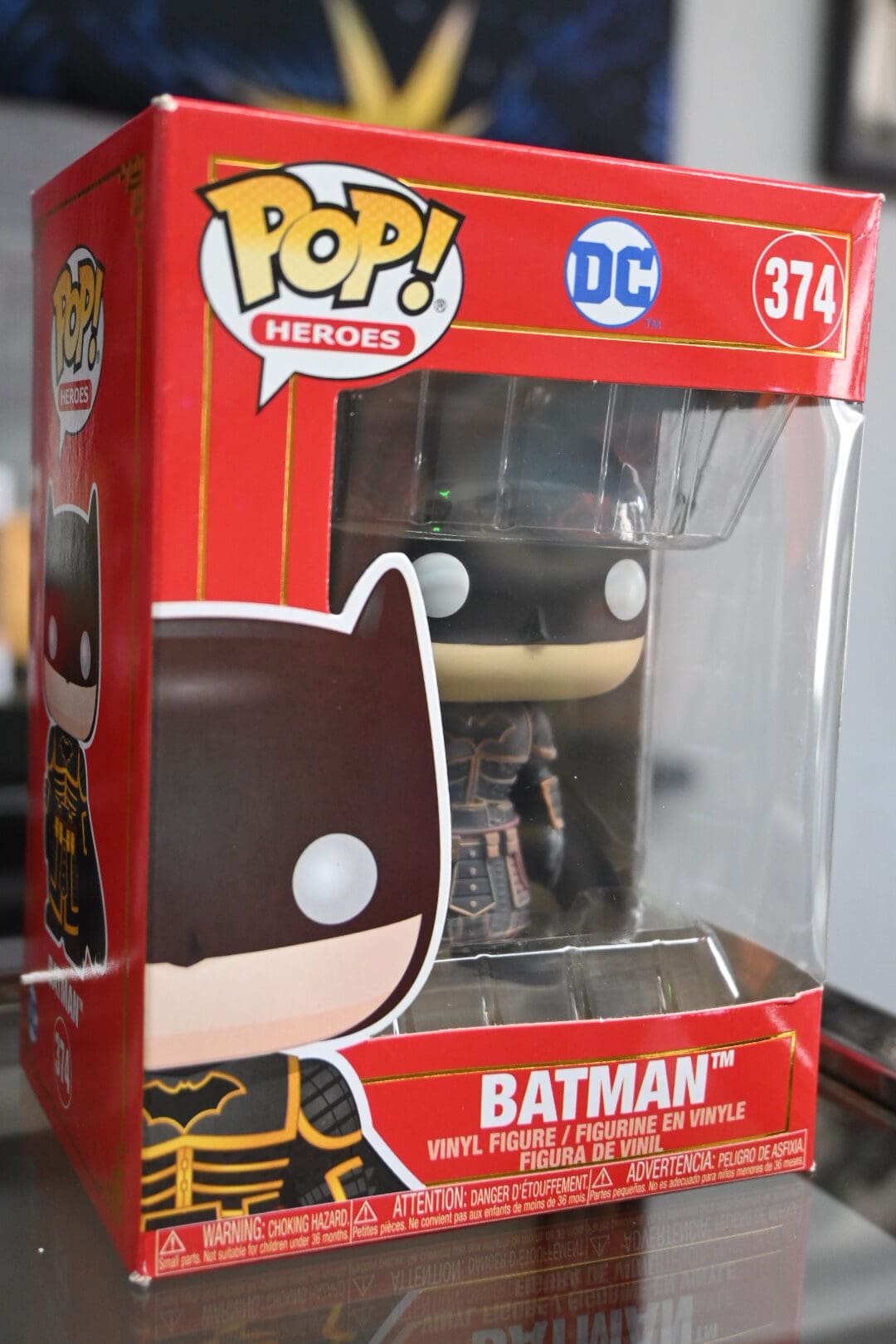 This Imperial Palace Batman Pop! features the Dark Knight reimagined in ornate armor inspired by ancient imperial warriors. The sculpt showcases detailed gold-lined plating, traditional textures, and a stylized Batsuit that blends DC heroism with Imperial Palace aesthetics. A striking crossover design that stands out in any Batman or Imperial Palace collection.