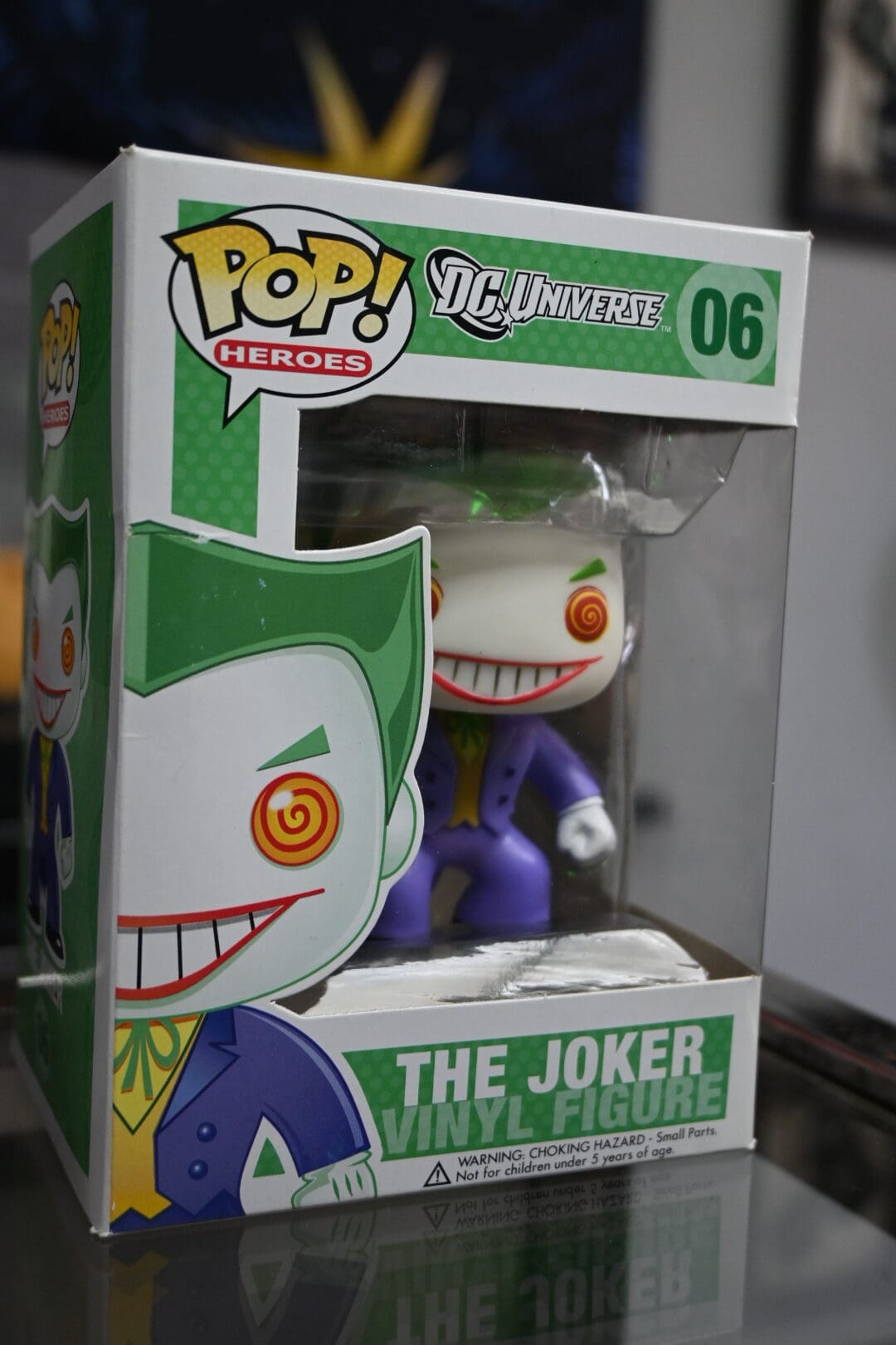 This classic early-line Pop features The Joker in his iconic purple suit with bright green hair, wide grin, and chaotic energy—based on his traditional comic appearance. As part of the DC Universe wave, this version has become increasingly sought after by collectors because of its low number and discontinued print.