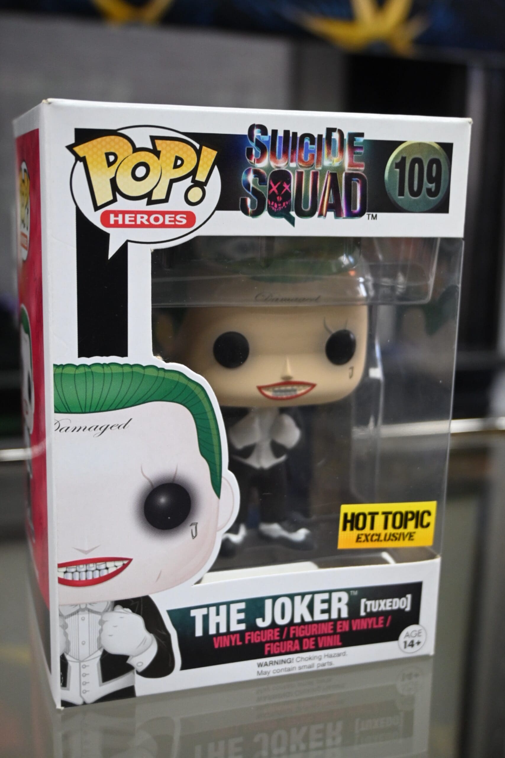 This Hot Topic Exclusive features The Joker in his iconic white tuxedo from Suicide Squad. With his slick green hair, tattoo details, and chaotic grin, this Pop perfectly captures Jared Leto’s version of Gotham’s Clown Prince of Crime. A must-have for DC collectors and Suicide Squad fans.