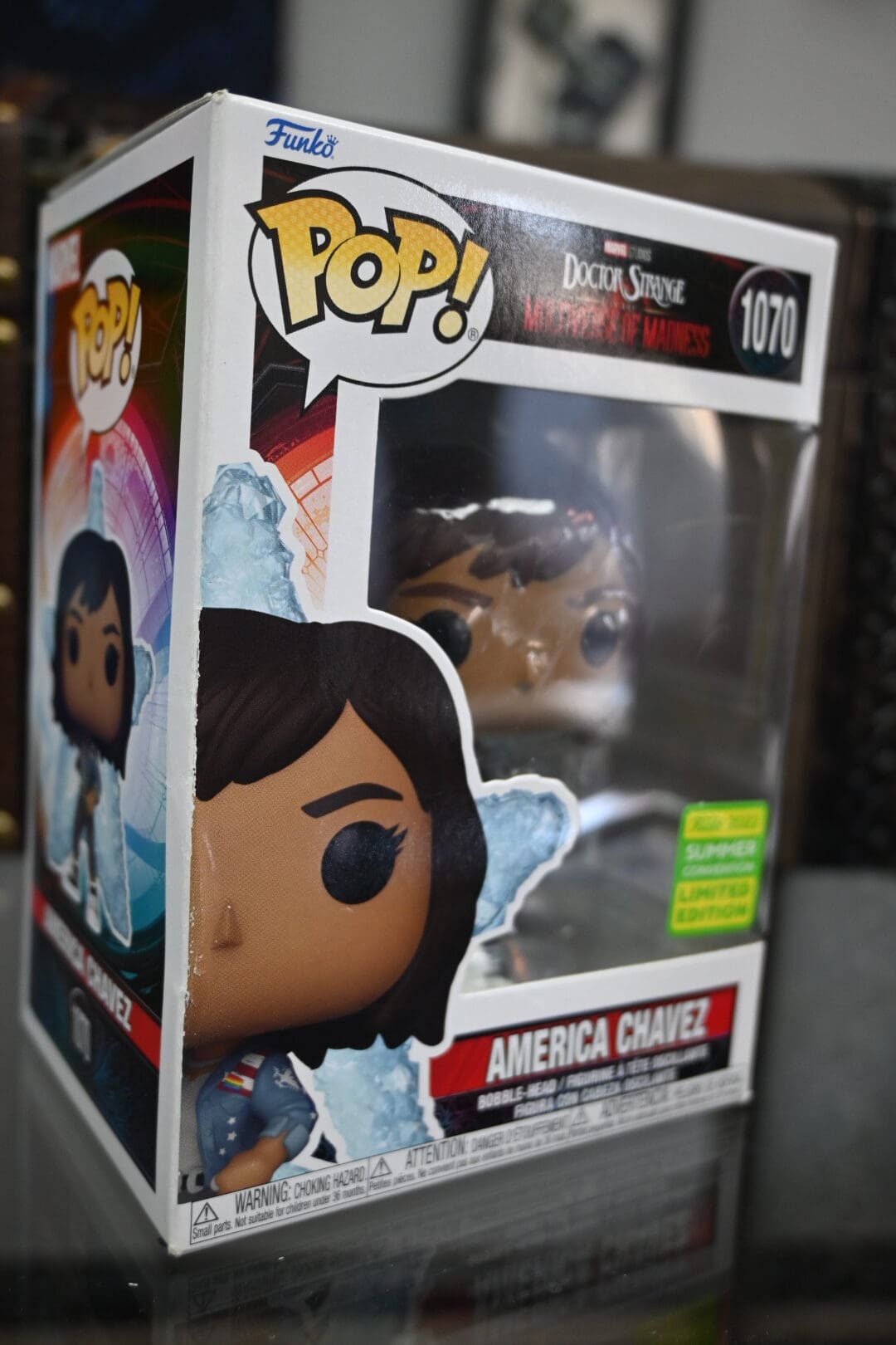 This America Chavez #1070 Funko Pop! is based on her appearance in Marvel Studios’ Doctor Strange in the Multiverse of Madness. The figure features her signature denim jacket with star details and dimensional portal-style effects, accurately reflecting her live-action MCU debut.