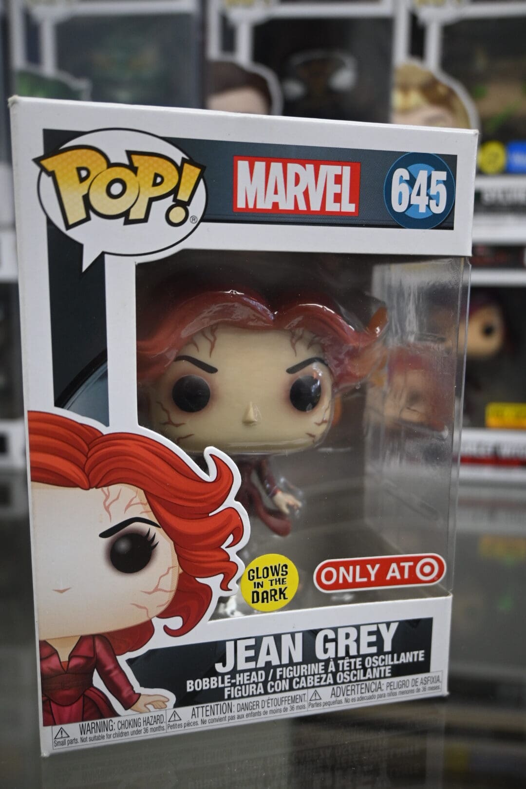Witness the raw power of the Phoenix Force with this Glow in the Dark Jean Grey Funko Pop! #645. Featuring her iconic red suit and intense, veined energy effect sculpted into her face and eyes, this exclusive figure glows ominously—perfectly capturing the unstable might of one of Marvel’s most powerful mutants.