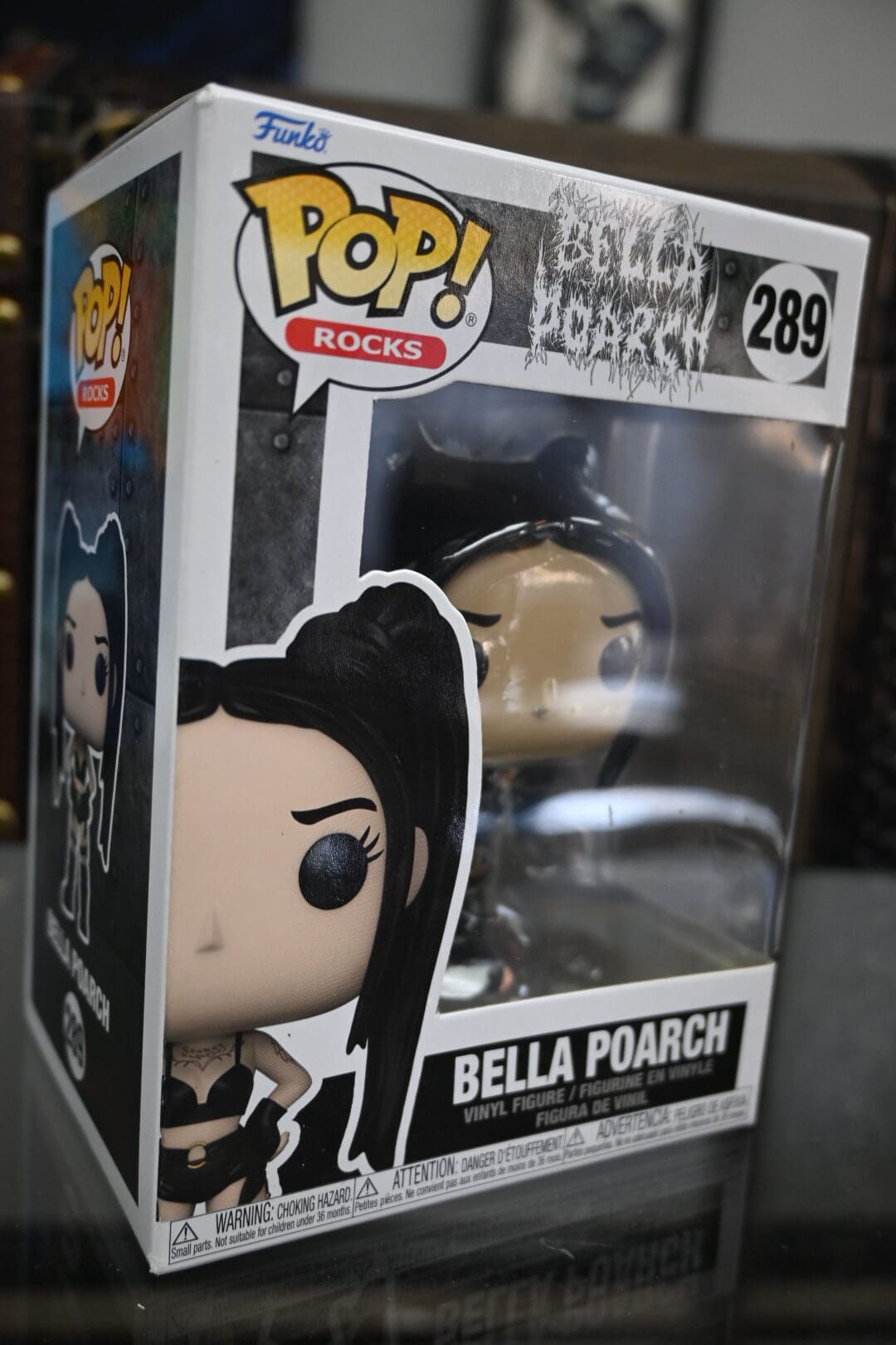 This Bella Poarch #289 Funko Pop! from the Pop! Rocks line features the viral music and social media star in her signature dark aesthetic, complete with long black hair and stylized details that capture her iconic look.