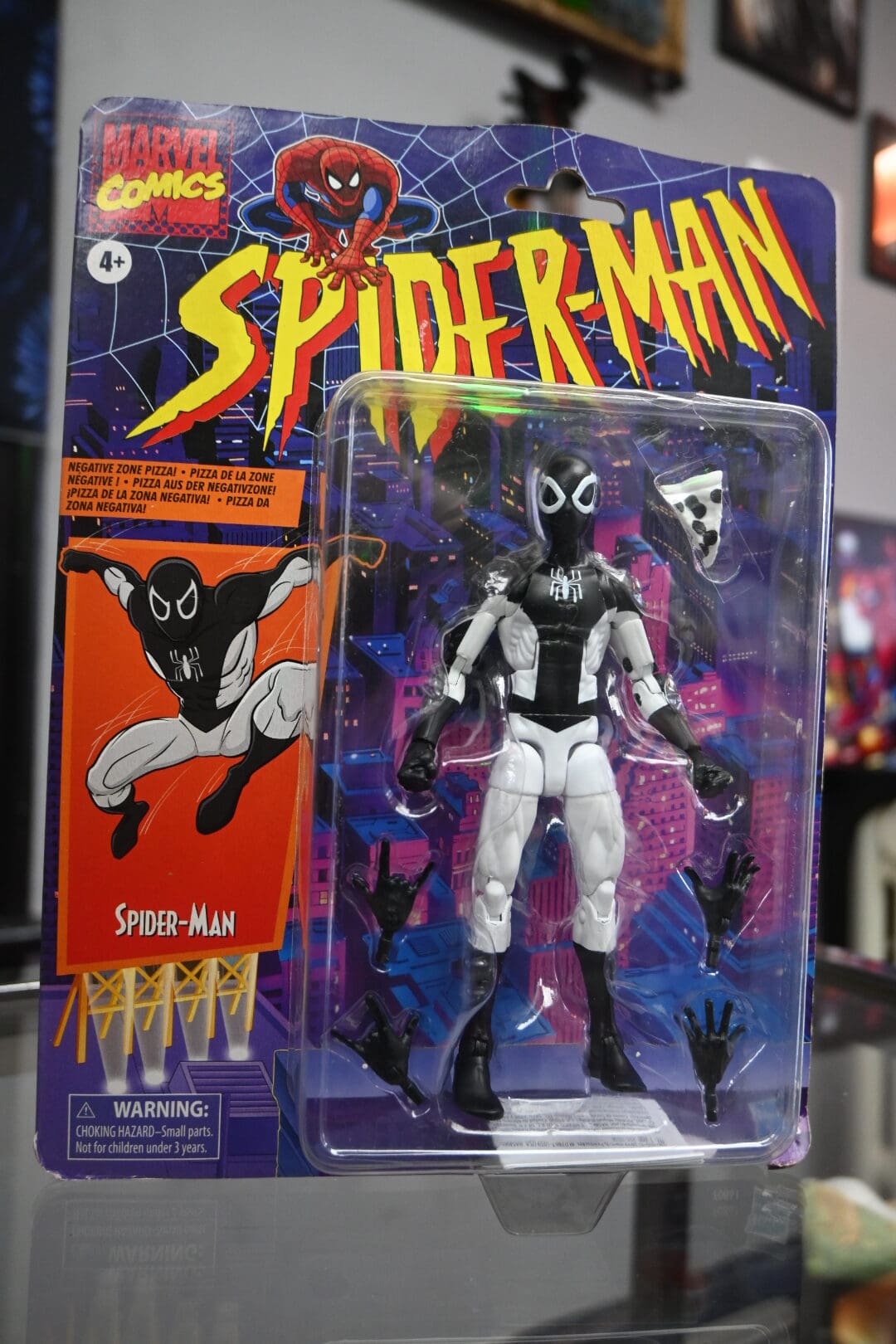 This Retro Collection Spider-Man features the striking Negative Zone suit, complete with alternate hands and a slice of pizza accessory. A perfect homage to classic Marvel Comics styling with modern Legends articulation.